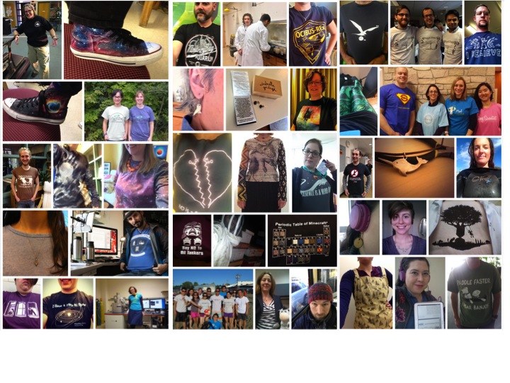 Some folks wore a different #scishirt for every day of the week. The hashtag is still being used, and people have suggested we do this every year. I think #scishirt intersects nicely with #thisiswhatascientistlookslike and other diversity initiatives. I don’t know how much of an in-group activity this was, or if it broadened anyone’s ideas about what scientists do or what we look like, or how approachable we are. Mostly, we had fun, and there’s a lot to be said for a strong dose of positivity on a week when the culture of science has you down.